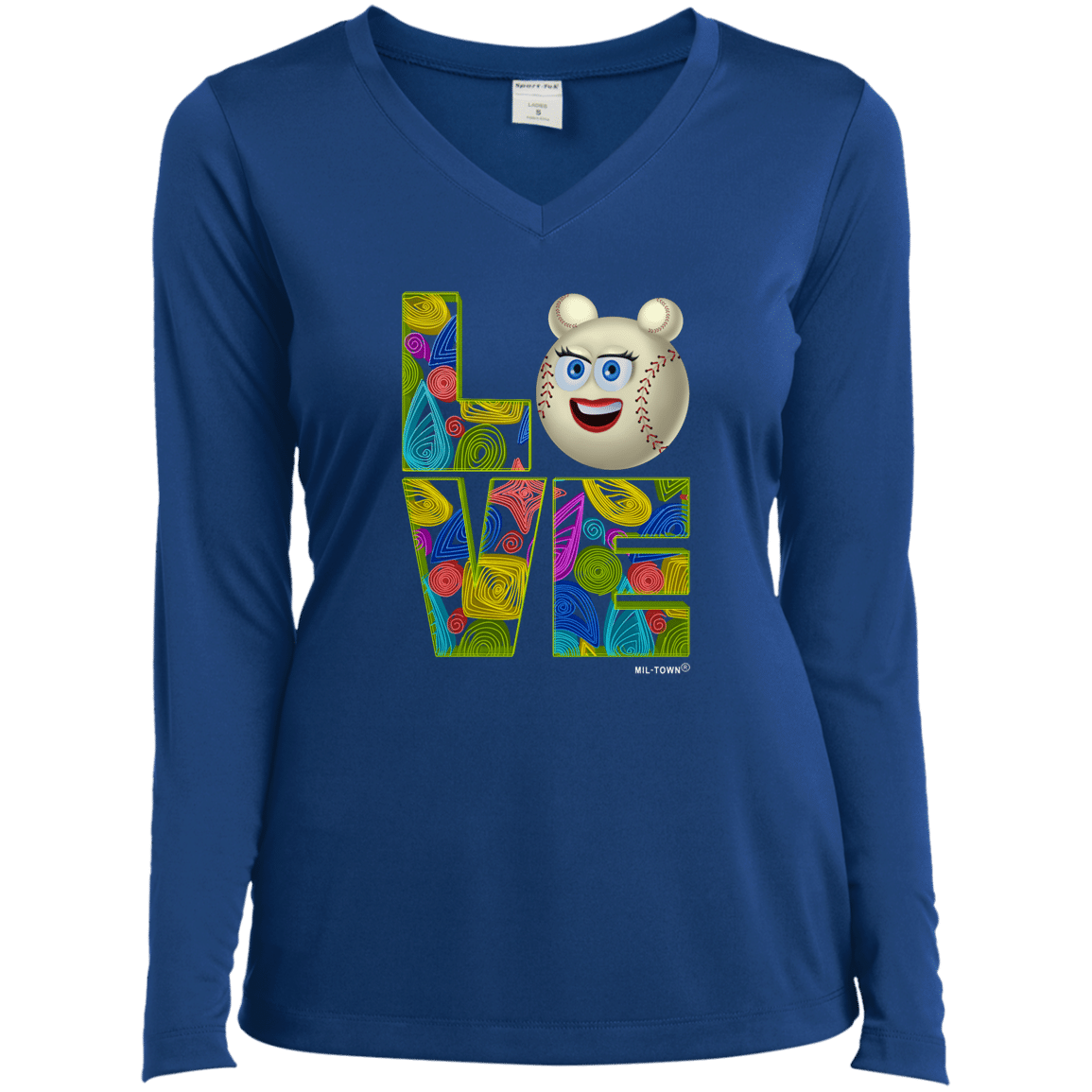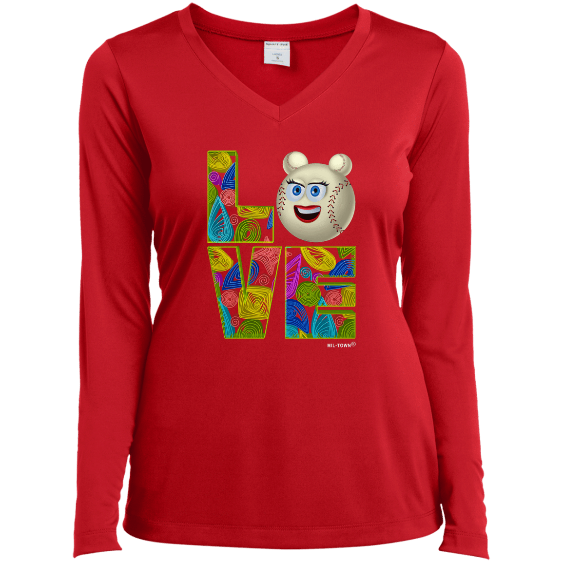 Love Baseball Face Women’s T-Shirt Long Sleeve V-Neck