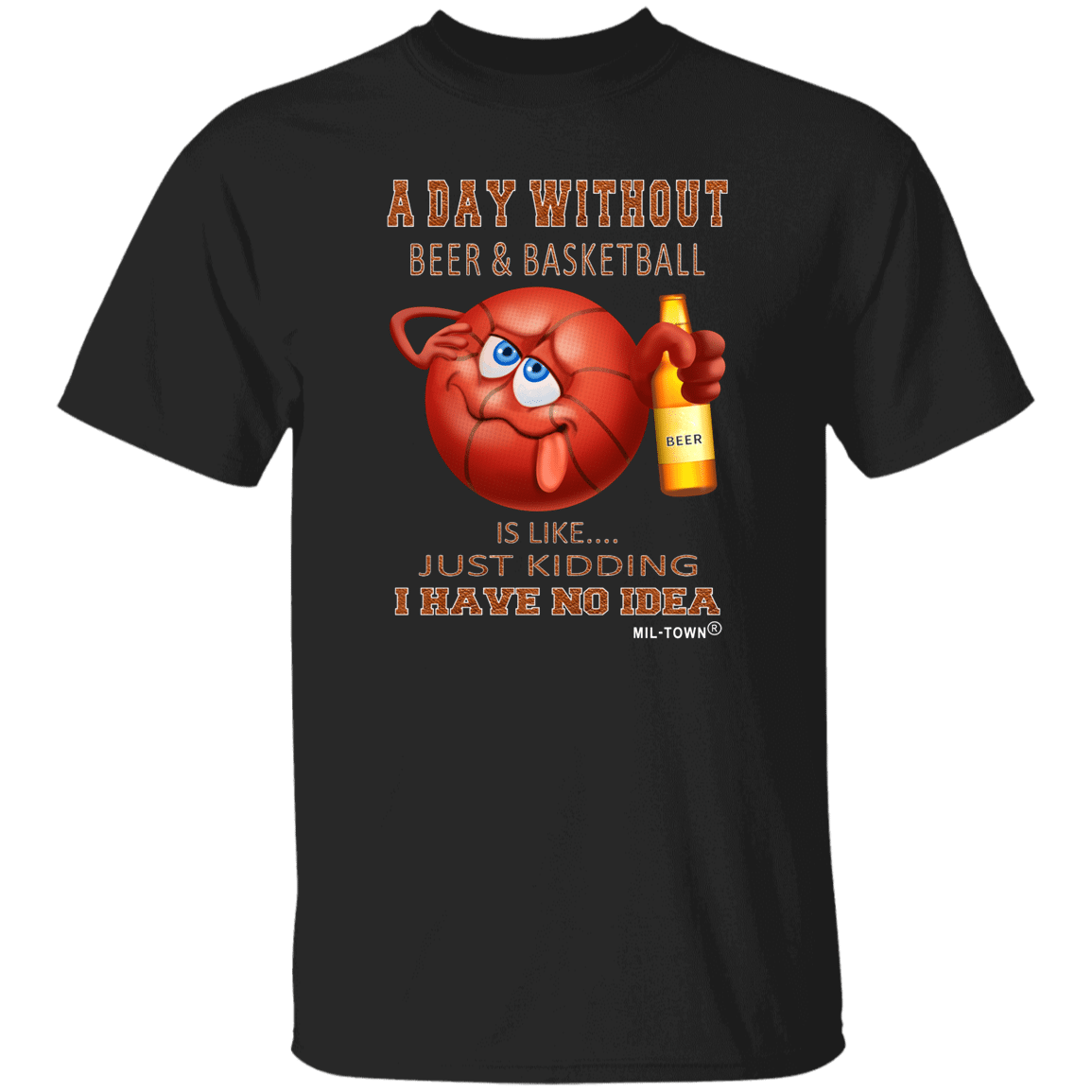 • Features: A basketball character with its beer bottle. A day without beer and basketball t-shirt, casual beer drinking shirt, funny beer-drinking basketball character t-shirt
