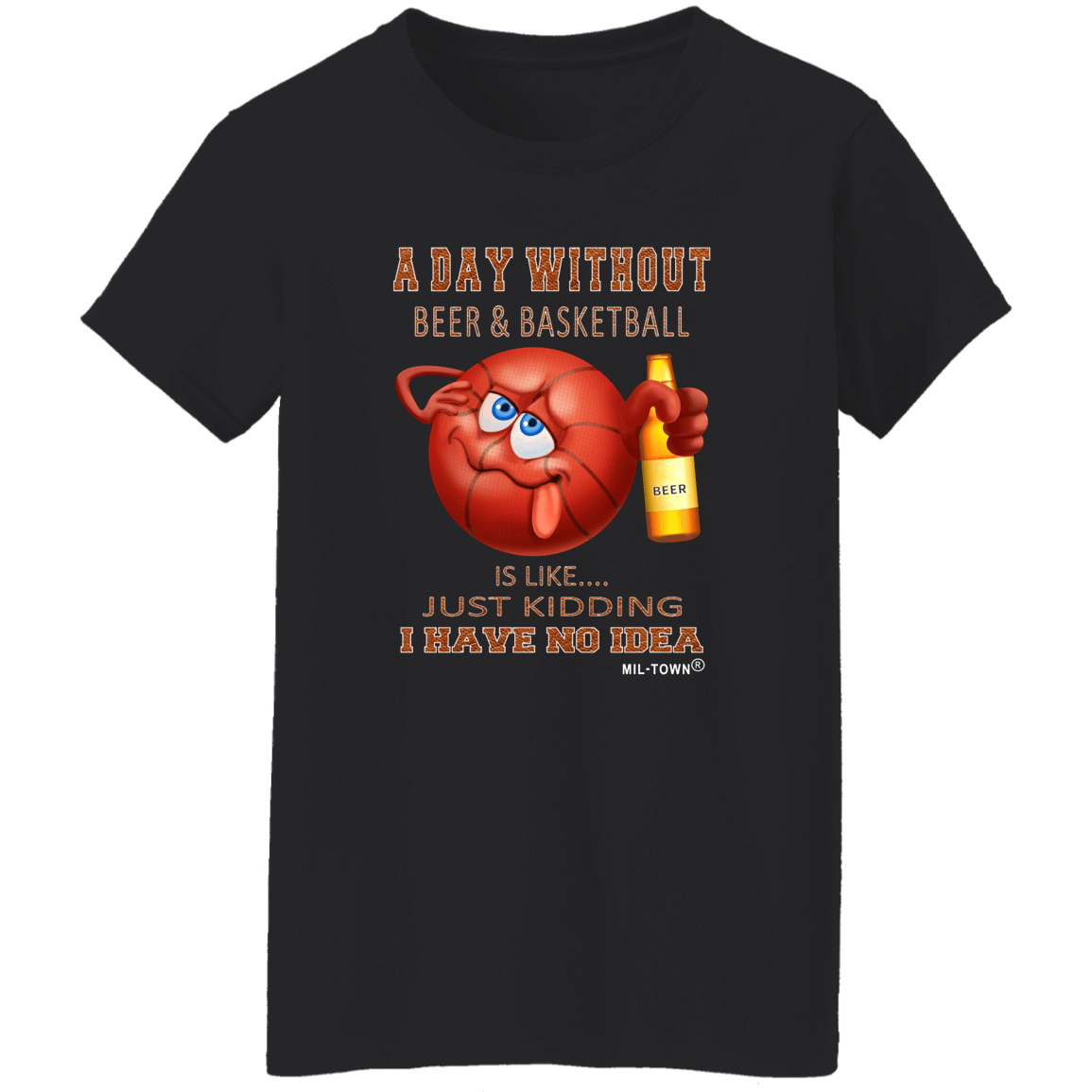 • Features: A basketball character with its beer bottle. A day without beer and basketball t-shirt, casual beer drinking shirt, funny beer-drinking basketball character t-shirt